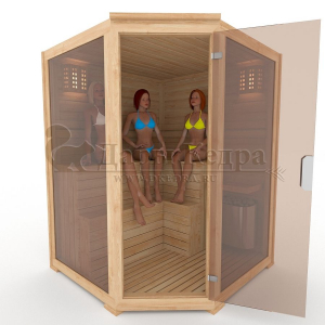 Трехместная угловая финская сауна кабина из кедра с электрокаменкой